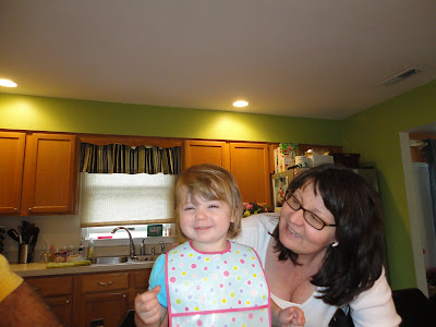 Grandma and Hannah, see how happy she was to decorate, color, drop, make a huge colored mess with the eggs????